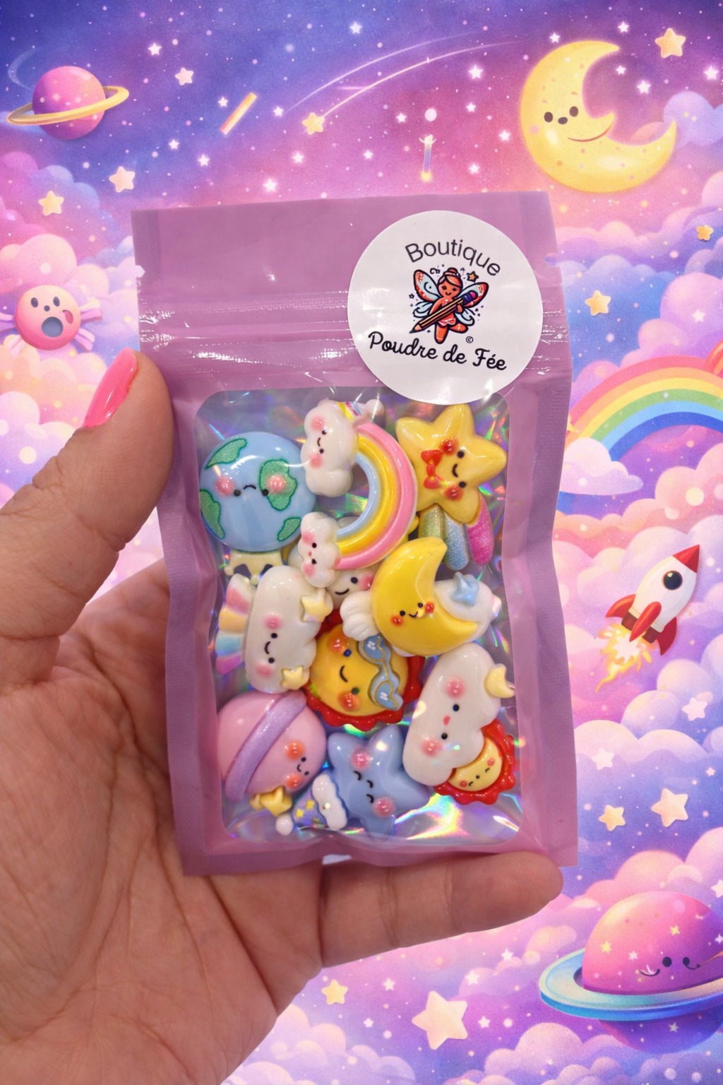 Unleash your inner cosmic artist with these 10pcs Cosmic Glossy Cabochons Flatback! Each whimsical piece, about an inch of pure sky magic, is glossy enough to make stars jealous. Perfect for sparking your imagination—because who wouldn’t want a sprinkle of the fantastical in their crafts? (Crafty wizards, assemble!)